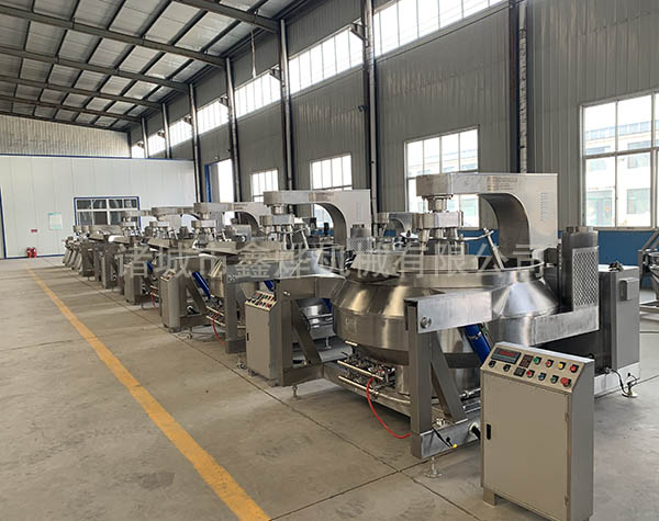 本設(shè)備有四頭攪拌、五頭攪拌和七頭攪拌,根據(jù)炒鍋容積和物料性質(zhì)來決定攪拌頭的數(shù)量。無需人工翻炒,鍋體液壓傾斜高位自動出料,設(shè)備有專門的進(jìn)料料斗,可以裝配乳化器。