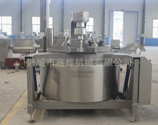本設(shè)備有四頭攪拌、五頭攪拌和七頭攪拌,根據(jù)炒鍋容積和物料性質(zhì)來決定攪拌頭的數(shù)量。無需人工翻炒,鍋體液壓傾斜高位自動出料,設(shè)備有專門的進(jìn)料料斗,可以裝配乳化器。