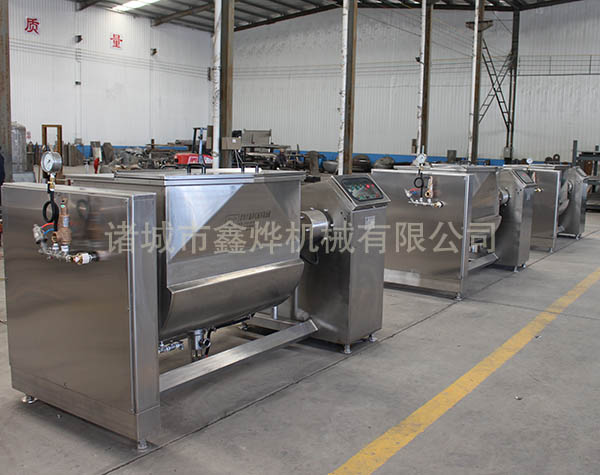 本機的U形鍋頂部抽真空,夾套采用蒸汽加熱,無段變速與蝸輪,減速機的組合傳動,增大了橫軸攪拌的力矩,采用食品級材質材質刮板的攪拌器,在物料的翻滾攪拌過程中,攪拌器與鍋體的充分接觸,確保了無攪拌死角。鍋體的開蓋,卸料,復位采用液壓,機械傳動控制,操作方便。真空炒制可降低炒制溫度,特別適應于高粘度材料的炒制,避免了因過度受熱引起色澤及口味的變化,保持了物料原有的色香味。提高了炒制效率,并降低能耗,縮短了炒制時間。